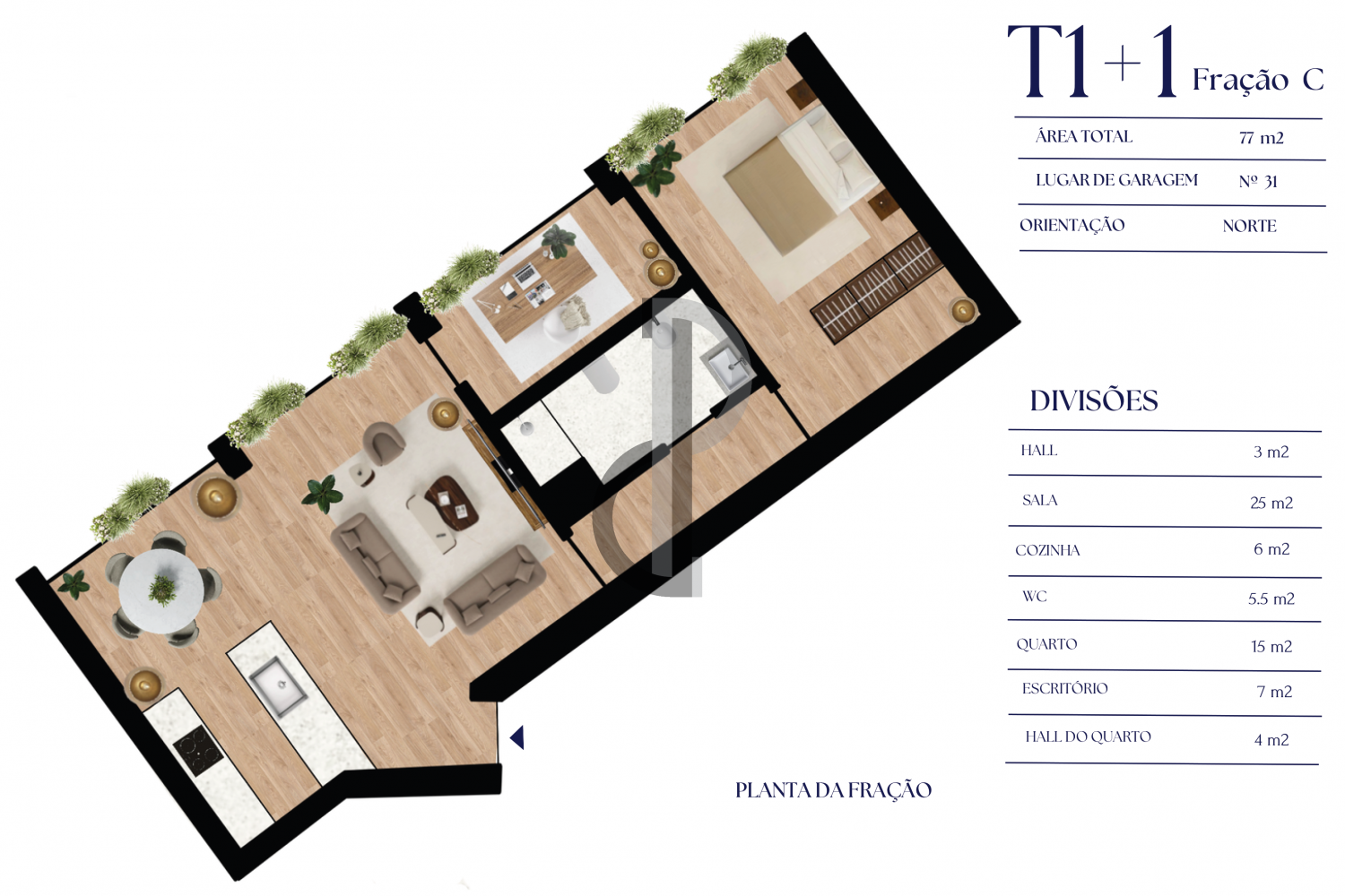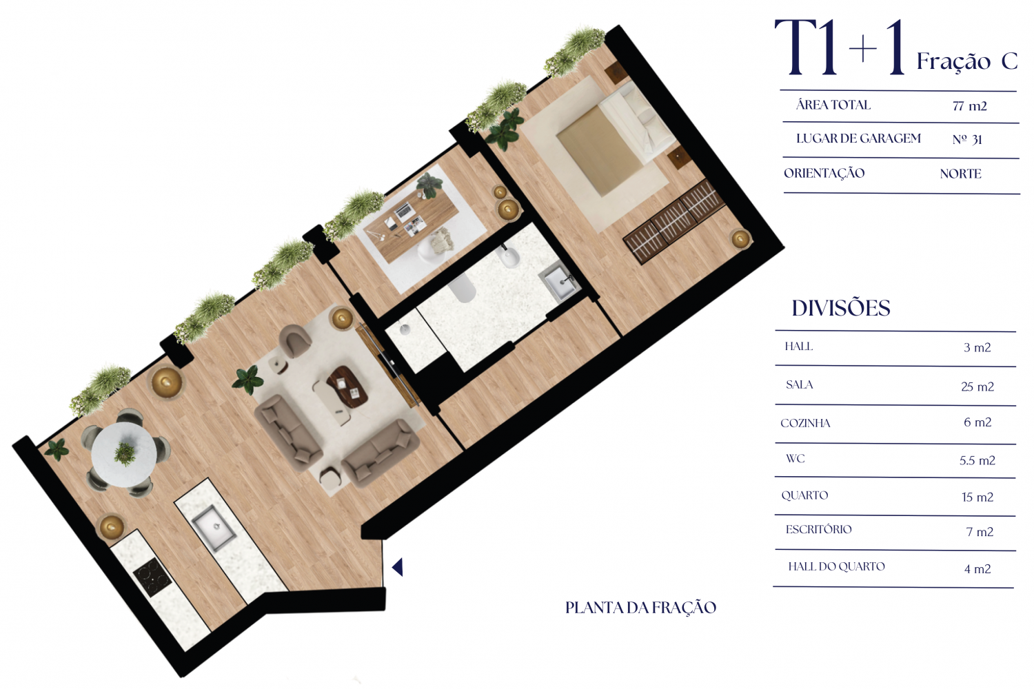 Fração C - Último apartamento disponível Apartamento T1+1 - Bonfim O Bonfim afirma-se hoje como um dos bairros mais procurados do Porto, situado na envolvente da Baixa. Trata-se de uma zona residencial de excelência, em plena transformação, que combina o charme do comércio tradicional com uma oferta crescente de restaurantes e espaços culturais. Muito procurado por jovens e residentes internacionais, destaca-se pela sua localização privilegiada, excelente rede de transportes e pela forte influência artística da Escola de Belas Artes e da Escola Soares dos Reis. O projeto, da autoria da Arquiteta Adriana Floret, integra 38 apartamentos (T0, T1, T2 e T3), distribuídos por seis pisos. Os apartamentos, dotados de amplas varandas, foram concebidos para proporcionar uma perfeita harmonia entre design, conforto e funcionalidade, dirigindo-se a um público que valoriza a vivência urbana na proximidade da Baixa do Porto. O edifício dispõe ainda de lugares de estacionamento e arrecadações, distribuídos por duas caves. O condomínio localiza-se perto da Igreja do Bonfim. A apenas 10 minutos a pé encontram-se a estação de metro do Campo 24 de Agosto e o Terminal Intermodal de Campanhã, que assegura ligação a metro, comboio e rede de expressos. A Rua do Bonfim é servida por várias linhas de autocarro com ligação direta ao Mercado do Bolhão. Piso 0 1 lugar de estacionamento Conclusão: 2º semestre de 2026 Peça já a sua visita! Ruth Santos Douro Project Real Estate